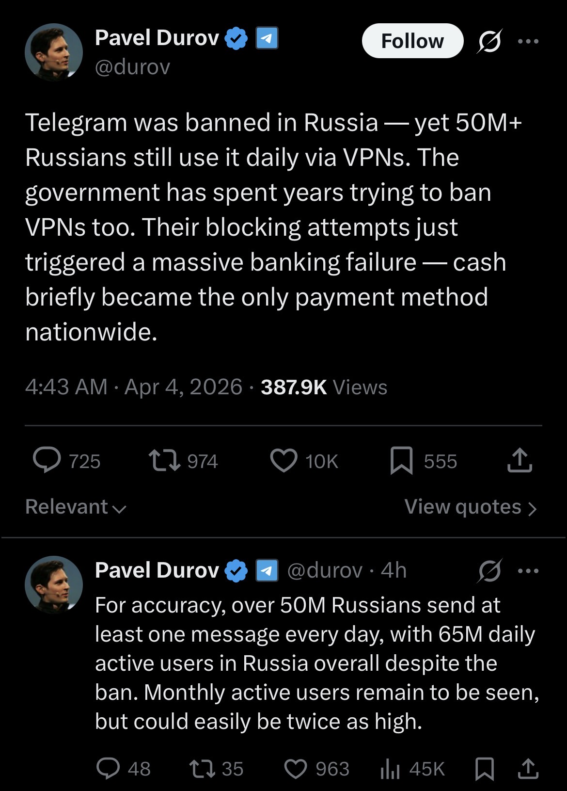 >>53234749050m russians use a vpn? Do they pay for it? Free versions seem questionable so many of them probably do pay. Vpn companies must be making bank if that's true.