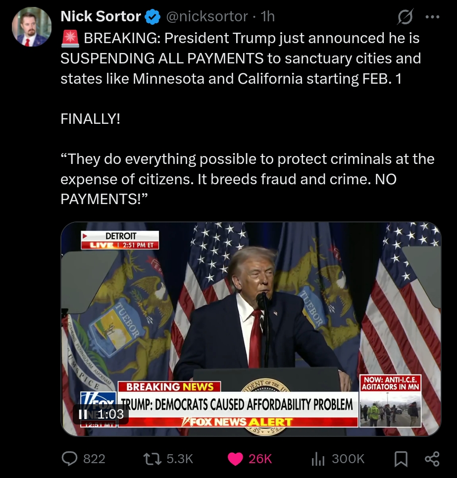 ON FEB 1, ALL PAYMENTS WILL CEASE.https://x.com/nicksortor/status/2011166203599876244?s=20