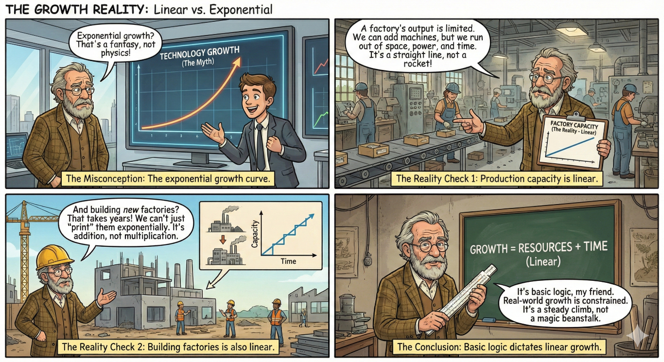 there is no such thing as compound technological growth. it's a myth, a fiction created by capitalists to keep you running in the hamster wheel for their benefit