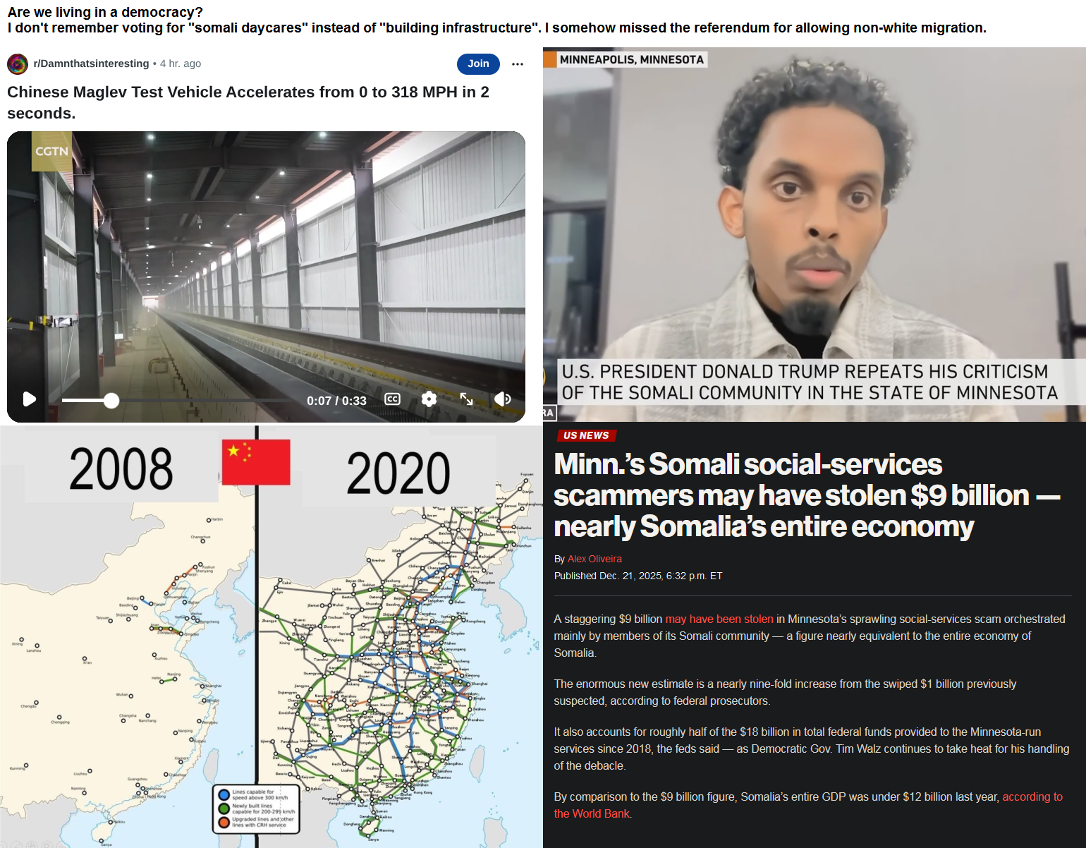 Which way do you choose, White man?Somali Daycares or Building Infrastucture?What did you tick in the box when your country had the vote whether non-white immigration is allowed in? You did have such a vote, right, living in democracy and all?