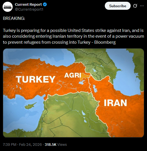 Türkiye is preparing for a possible United States strike against Iran, and is also considering entering Iranian territory in the event of a power vacuum to prevent refugees from crossing into Türkiye