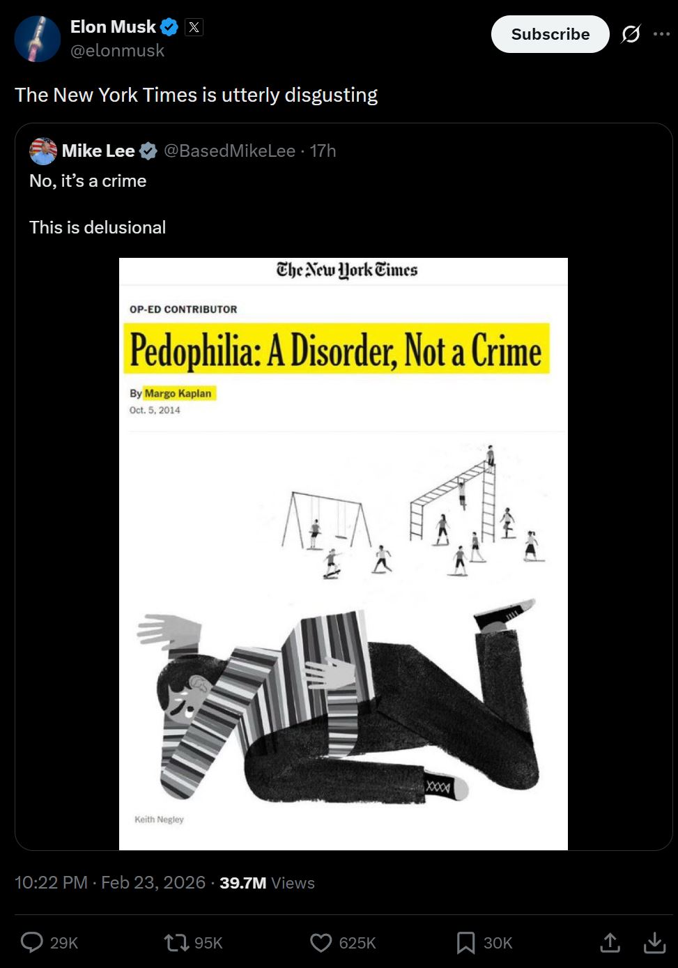 Jeffrey/Mossad ran a blackmail operation that made use of teens that lied about age.If you keep going down the Jeffrey rabbit hole, this will be revealed to the public. These revelations will force the Government to lower the adulthood age for national security reasons. The irony is that Elon bought Twitter right after his trans son turned 18 & filed the paperwork to transition into a woman in order to enforce 18 adulthood age theory, but by drawing attention to Jeffrey, he's in the process of destroying 18 adulthood age theory.If Elon believes that Biology should determine Gender, then this opens the door to Biology determining Adulthood. Puberty = Adulthood in Nature. This means Elon's 17 year old son was scientifically an adult when he wanted to transition, meaning he did nothing wrong!This is the will of Kek! Elon loves Kek & Kek is an Ancient Egyptian God. Under Ancient Egyptian Law, a Formal Age of Majority didn't exist & so you were an automatic adult at 13-15 based on physical characteristics alone. That's why Jews say adulthood is 13+.https://x.com/elonmusk/status/2026135632624652377