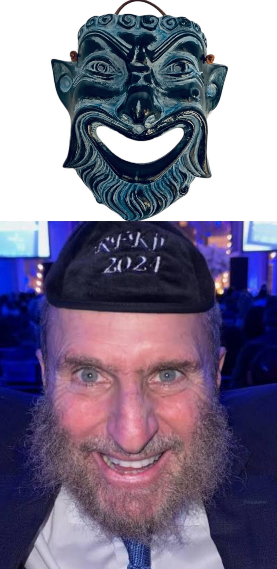 This is a commedy mask from 250 BC greece.