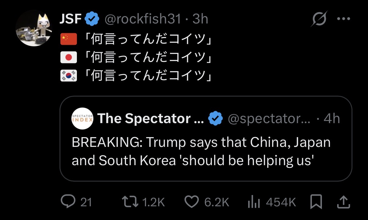 >>530920222China: noJapan: sadly noS. Korea: we will get back to you after careful deliberation with all of our lawmakers to come to a firm consensus necessary for such endeavor