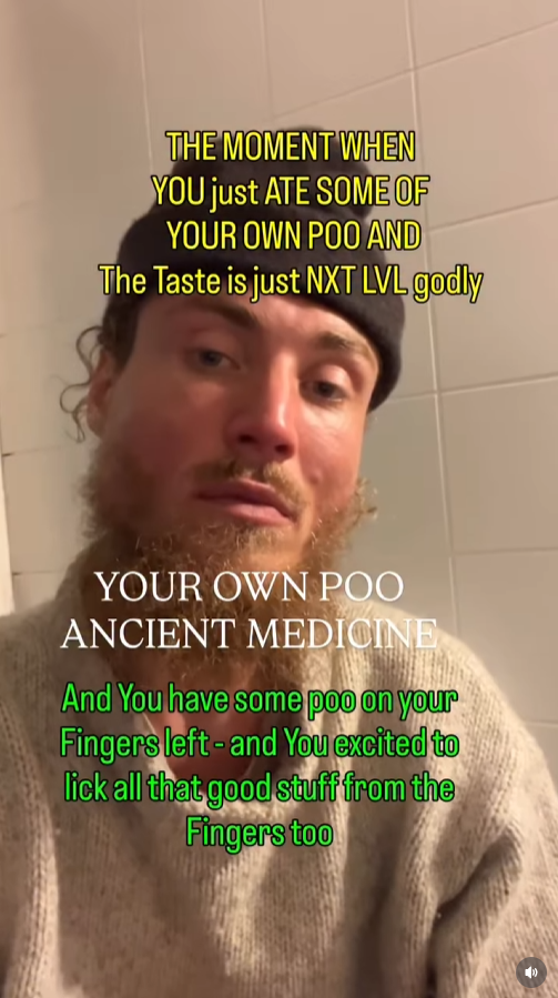 TAKE THE ULTIMATE REDPILL https://www.instagram.com/p/DV8VA-LCFQD/>WHEN THE DAY COMES, SMEAR POO ALL AROUND YOUR BODYCan we get this guy onto Joe Rogan? He talks about eating literal POO and ANIMAL POO while maintaining a chiseled physique. START PRACTICING AUTO-FECAL THERAPY AND FREE YOUR MIND.