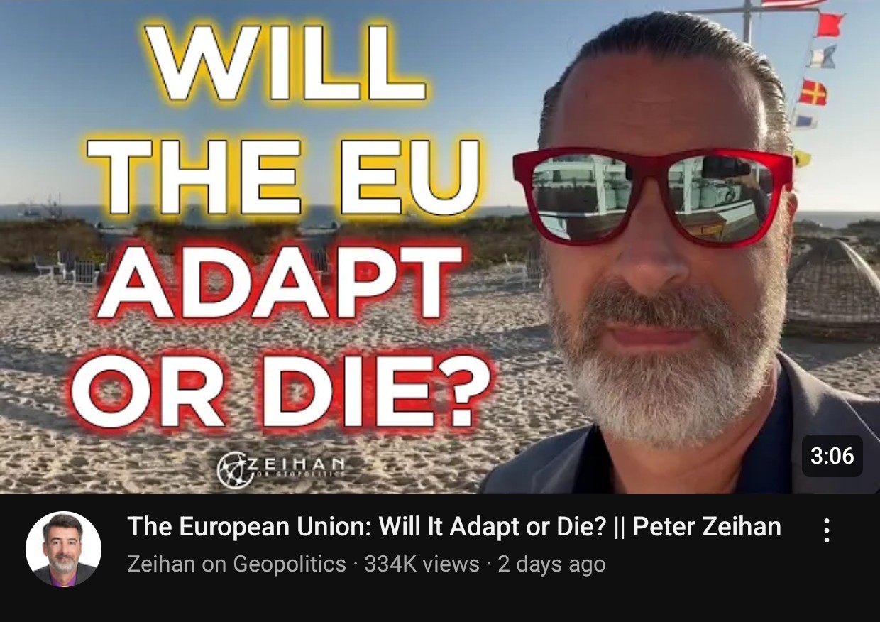 Zeihan is bearish on Euope. He thinks that Europe is ultraUbermega fucked. Their collapse will only be slightly better than China's. They won't all starve to death like China will but it will be back to old days of constant warring between them and them being dirt poor 3rd world nations too.