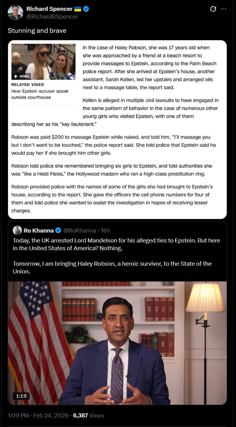 Lord Mandelson did nothing wrong!https://x.com/RichardBSpencer/status/2026358748726571375
