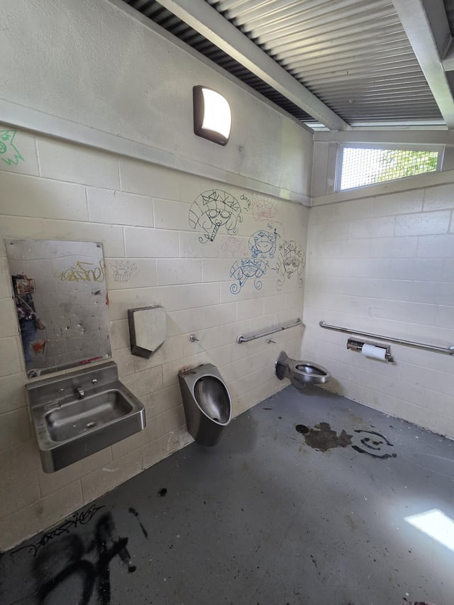 how much more proof do we need that American leadership is mentally ill? This is a public bathroom in arguably the most affluent place in the world (Bay area; Berkeley). The city manager makes $500k/yr.At what point do we burn everything and everyone down before everything in America outside a golf club looks like a shanty town?