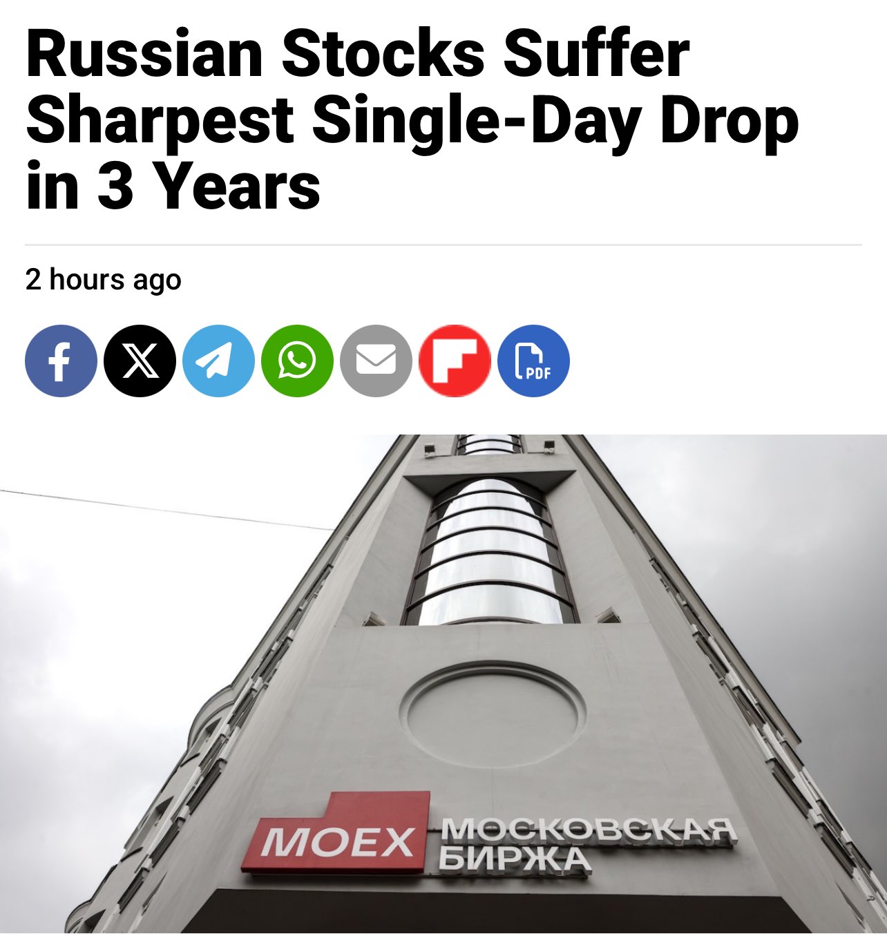 >>518420181>Just did. It's the lowest it's been in 1 year.that's not what the article is about, it is making it sound like moex closing at -4% is equivalent of a crash when it's been consistently closing days between 2 and 3%. Is it its worst day in 3 years? yes. Is it a collapse? No.>Because whoever authored it most likely talked about select stocks or provided some explanation for their claims.it's obviously talking about the moex index which entire point is to get a general idea of how stocks are behaving rather than individual noise.