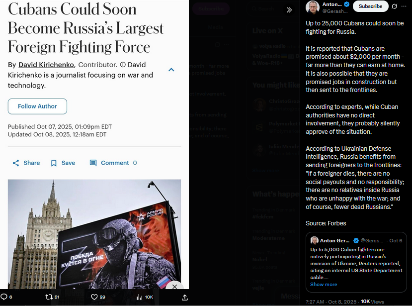 President Stubb:Ukraine is in a better place than they were a year ago, and there are reasons for that. Their military capacity has strengthened.In the past roughly 1,000 days, Russia has advanced by only 1% of Ukrainian territory. Meanwhile, we've seen developments in the Sumy region over the past few days and weeks that have shown Ukraine's capability to advance.https://x.com/Gerashchenko_en/status/1975912471400452608https://files.catbox.moe/ic2l52.mp4