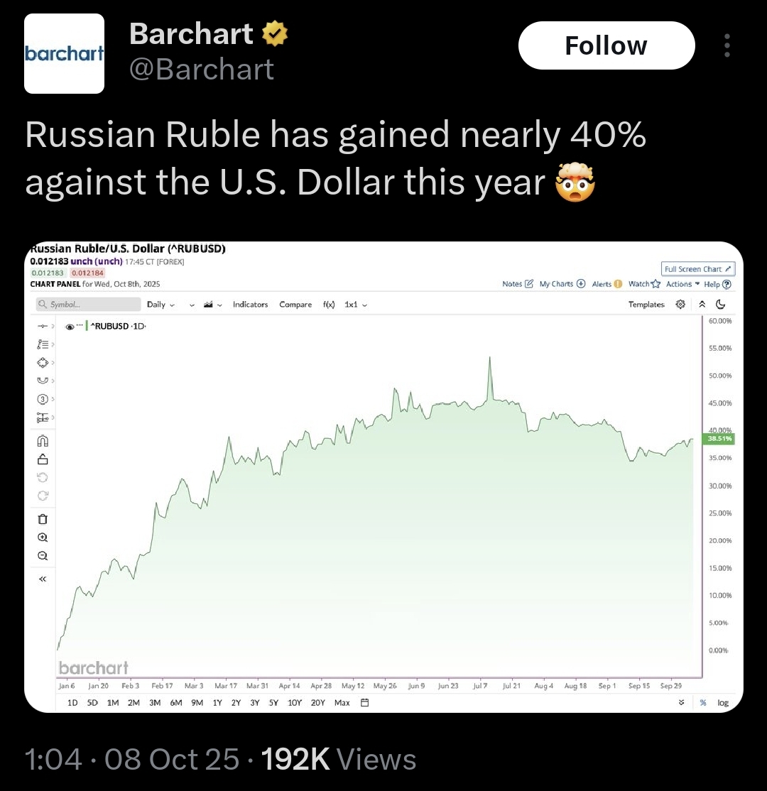 >>518435652>Russian ruble stronger>This is bad for RussiaNafos not sending their brightest.