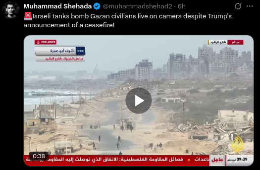 >>518468118What are they even still bombing? It's not even a ceasefire. That would imply both sides were fighting. Its just been an ethnic cleansing for the last six months.This is just a real estate deal at this point. How much land do we get for the resorts, and how much land Israel gets to colonize.