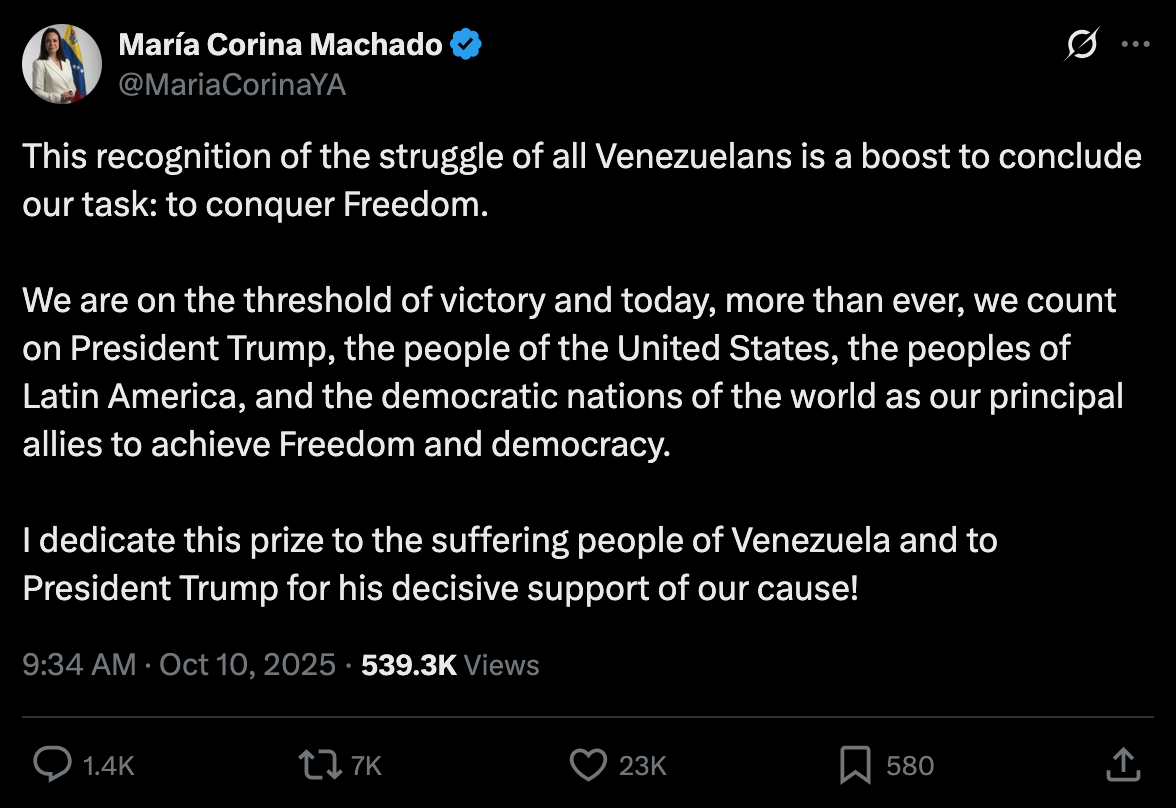 >>518546323>https://xcancel.com/MariaCorinaYA/status/1976642376119549990