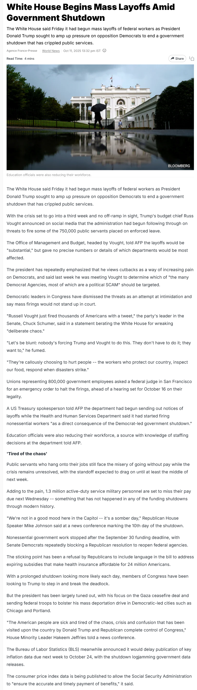 time to cut the chaffhttps://www.ndtv.com/world-news/white-house-begins-mass-layoffs-amid-government-shutdown-9436251