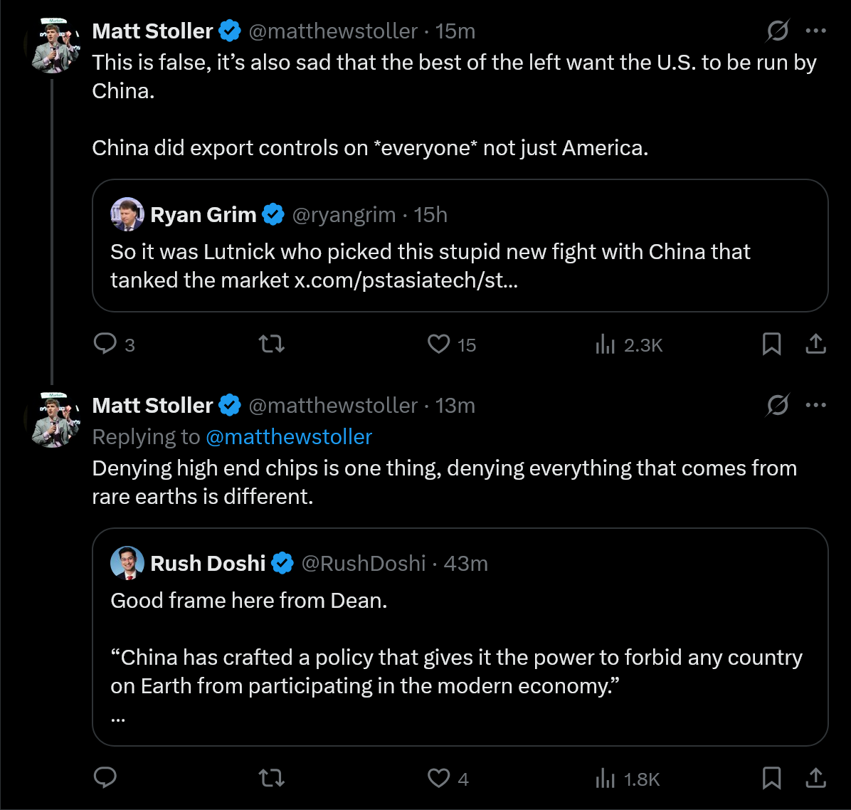 >>518647112It's concerning that China went so far as to implement export controls on the entire world. Maybe they just overreached, but then again, they started Covid.