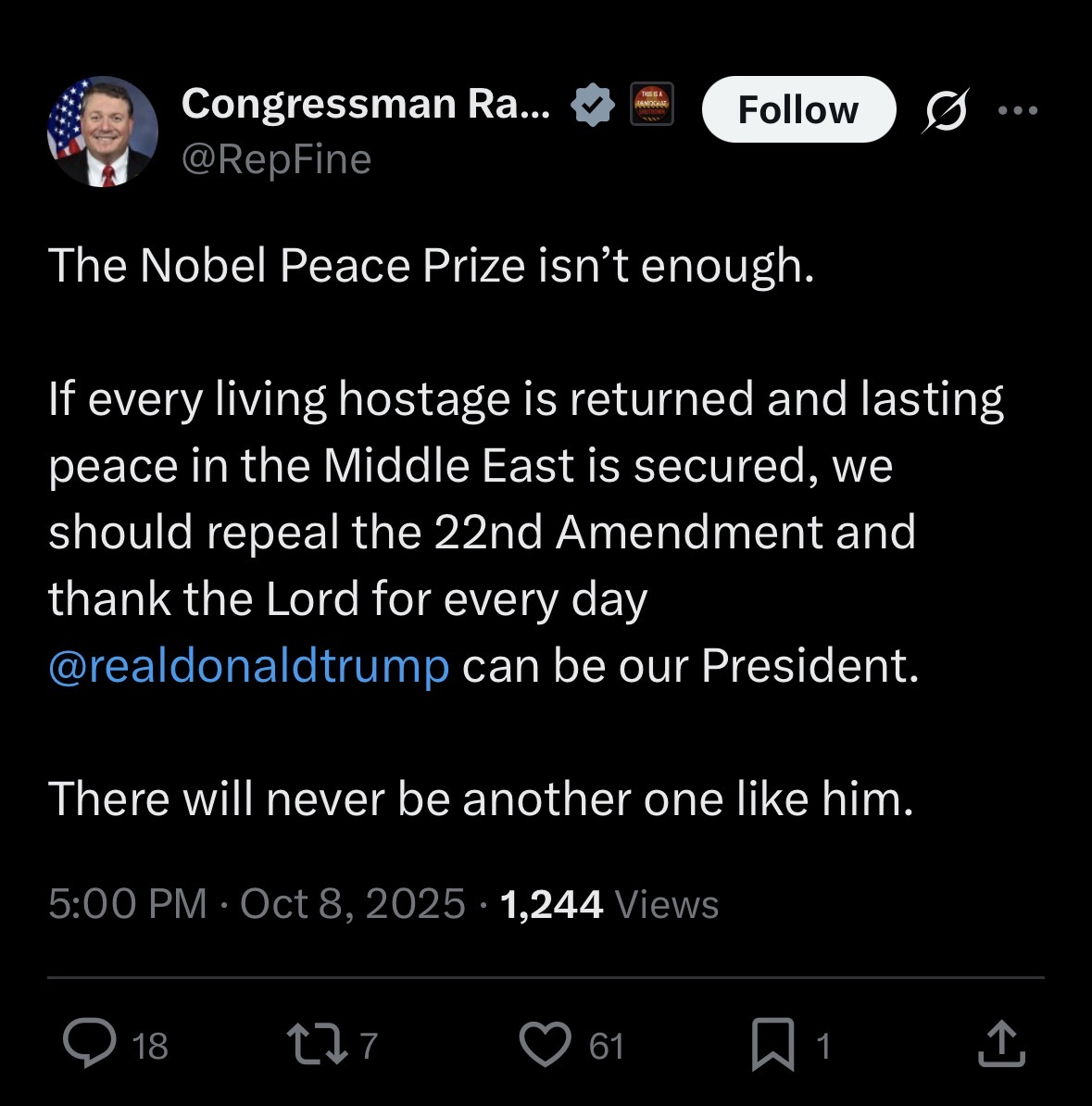 Is Donnie still crying he didn’t get his Nobel participation trophy?
