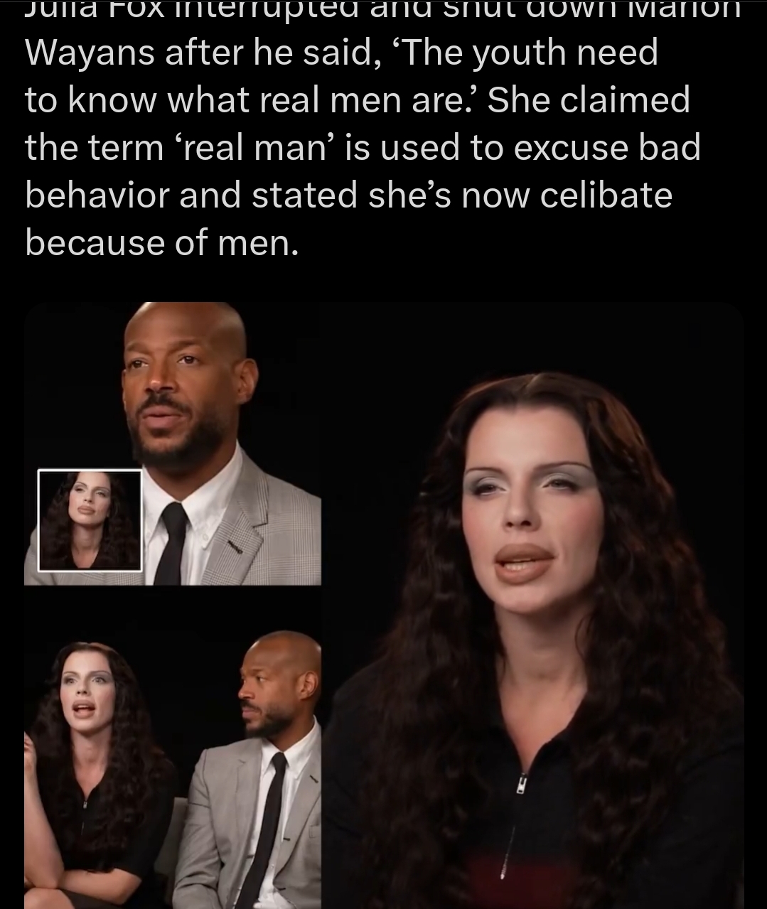 Julia Fox interrupted and shut down Marlon Wayans after he said, ‘The youth need to know what a real nigga is.’ She claimed the term ‘real nigga’ is used to excuse bad behavior and stated she’s now celibate because of niggas.https://x.com/Raintheplug1/status/1977008515341537731