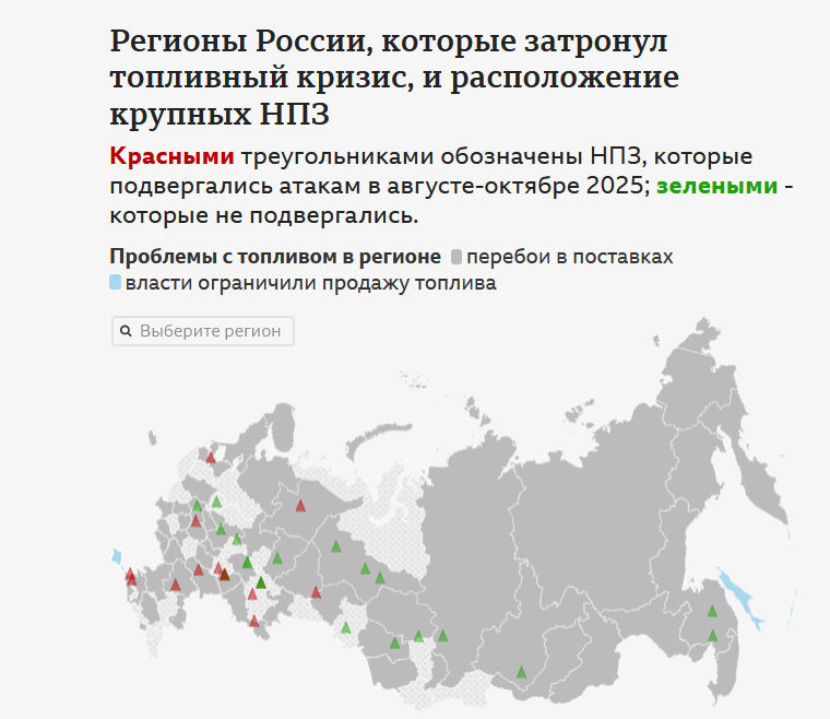 > Gasoline is running low in the Novosibirsk region due to the suspension of shipments to refineries.Prime, the largest independent gas station chain, has not sold 92- and 95- gasoline since October 8.