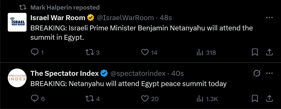 https://x.com/JulianRoepcke/status/1977706409773932703>Short #Analysis on Israel and Gaza>Dozens of times, Prime Minister Benjamin Netanyahu has declared that at the end of the war, there would be no more Hamas and the terrorists would be destroyed, so that October 7th could not happen again.>Today we see a deal that keeps Israeli hostages and Hamas alive. In addition, it essentially grants them immunity to fully reestablish their reign of terror in Gaza. With thousands of old/new fighters.>I am happy for the now freed hostages and their families. I do not see the promised and hoped-for victory for Israel or the supposed diplomatic masterstroke of Trump.
