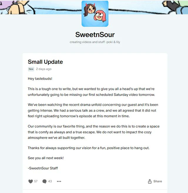 >>518784774>>518784742>>518784664>Pokimane and LilyPichu announce that they have canceled their scheduled podcast episode with HasanNow you reationary Nazi haters did it.As if it is not bad enough to try to take the dog from a man but now you take his friends with your malicious gossip.I'm losing my hope in humanity.
