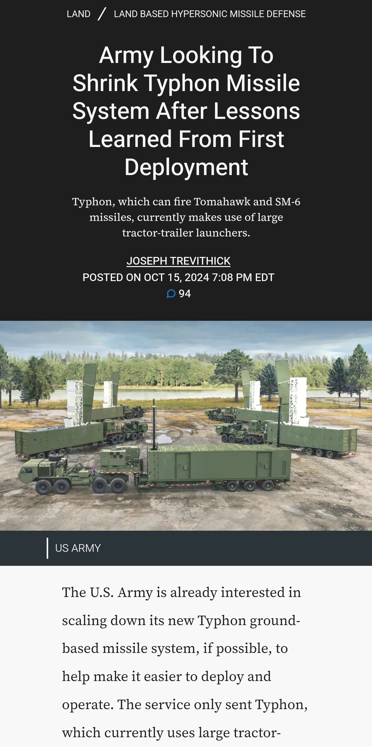 >>518787881>It’s also only launched from a ship so it’ll have to fly over the entirety of the ukraine to even reach russian regions.No they'll give Ukraine Typhon (ground-based launchers) apparently. But to be effective, they would need to be launched in the MULTIPLE dozens at least and that number of Typhons don't exist in the world. Apart from the fact that a battery of 4 launcher vehicles + command vehicle is 5x 20-wheeled articulated trucks. They'll have to come in via road and they'll be tracked every single metre of the way.