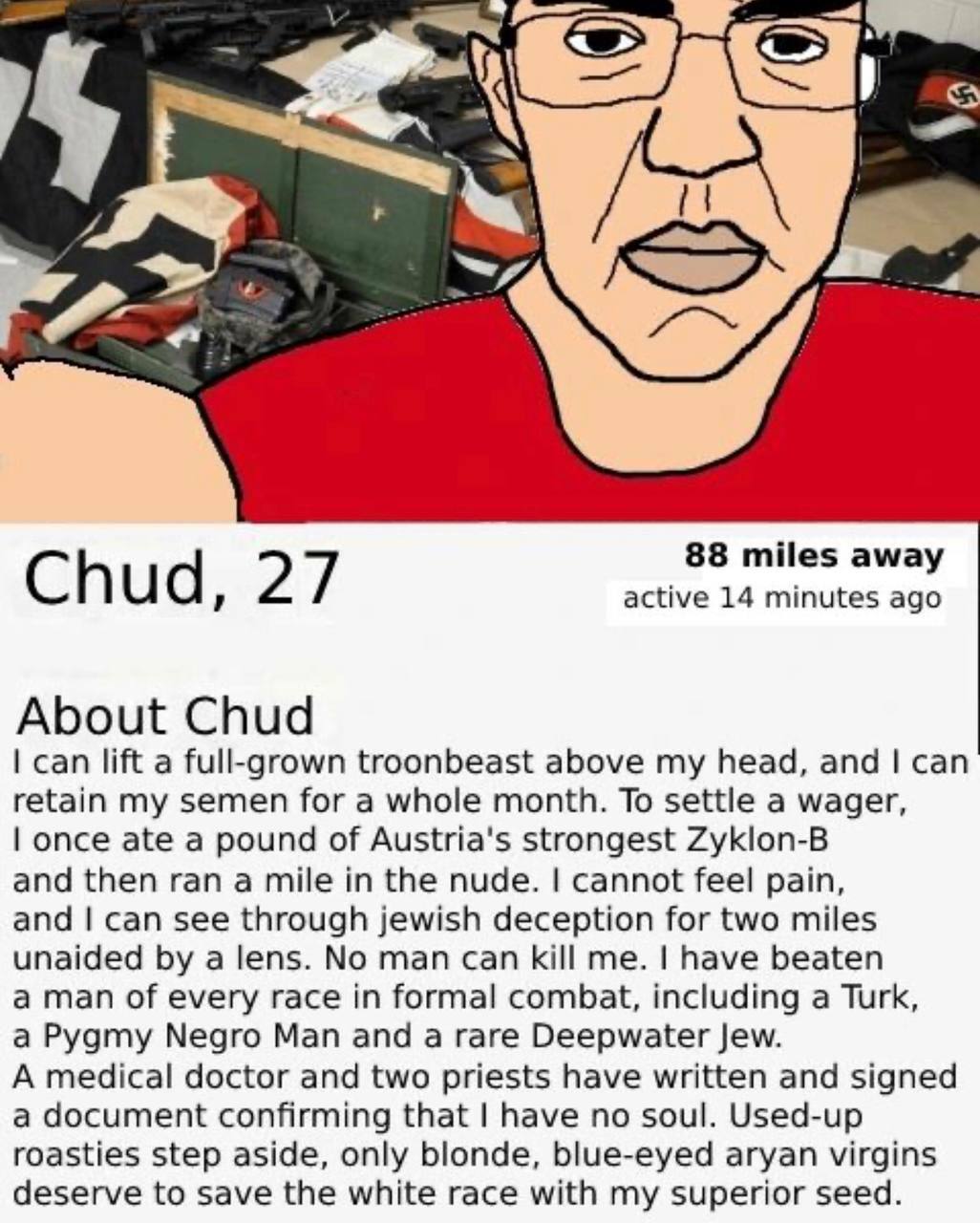 >>519105222He is, he was doing a pathetic demoralization attempt earlier.Last time we had a troon from the tumbleweed lefty/pol/ show up.