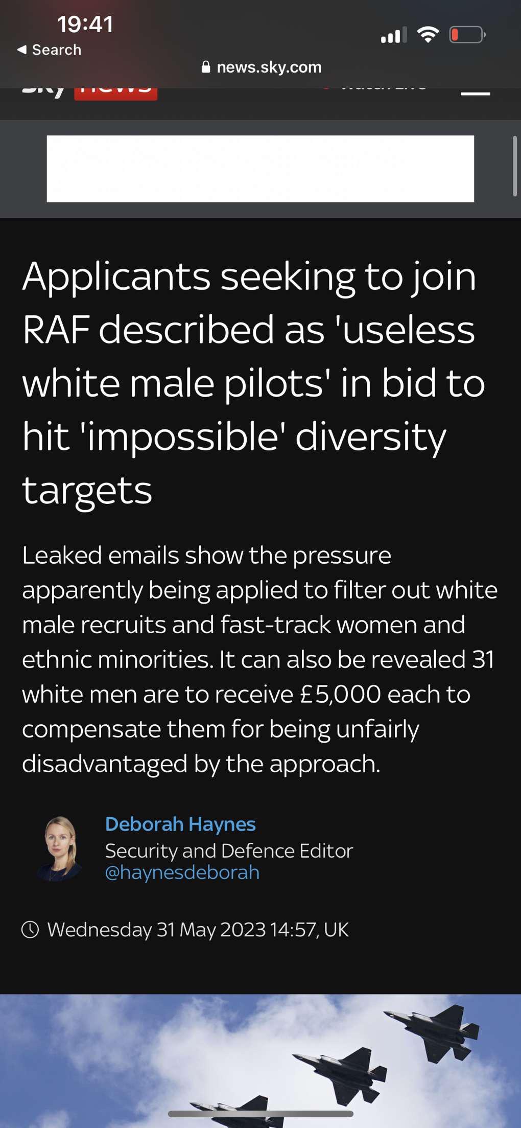 >be young bong>want to become a RAF pilot>they say no, DEI quota for white male pilots is reached. >but we have place for you in the army if you want, just dont expect ever to rank up, those positions are DEI only. That's pretty much how it is right now.