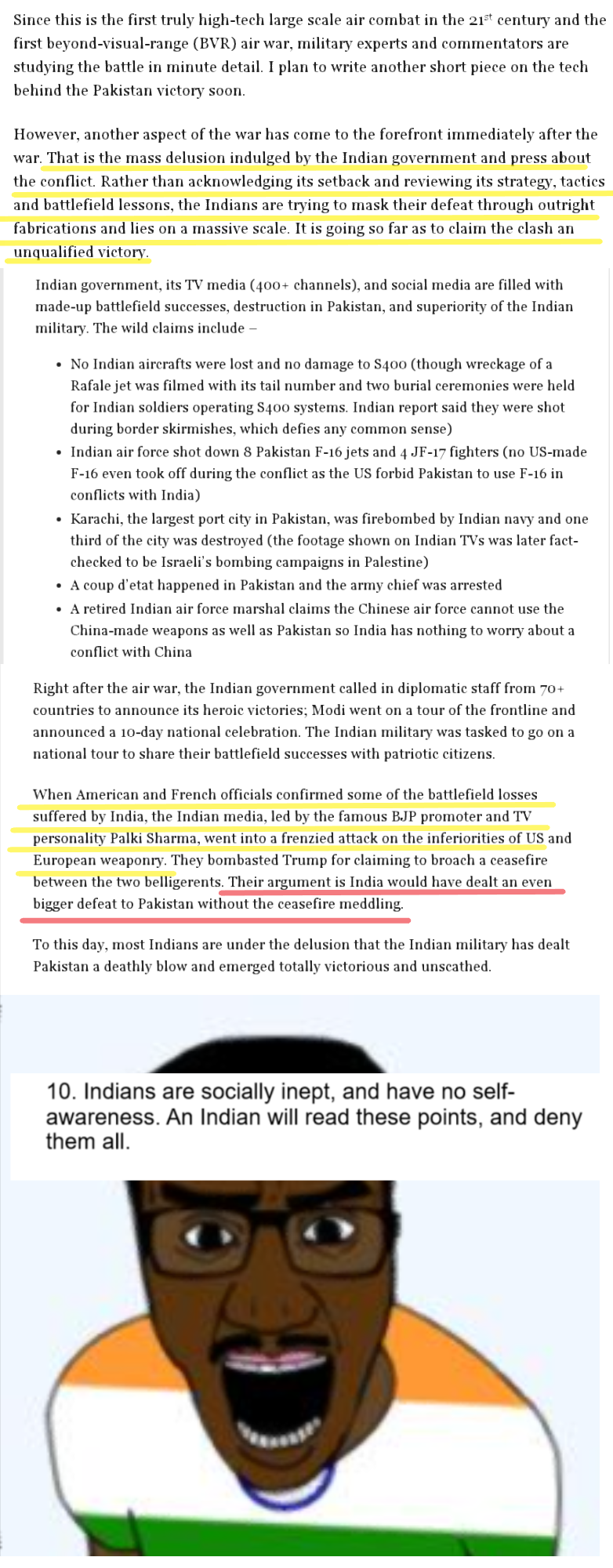 >>519103008>why is this happening?they supposedly lost at a joint-exercise against the IAF. see pic related.>b-but the paki skirmishes.keep believing paki lies. this article here >>519106393 was literally written by some chink named Hua Bin, scraped off a third-rate propaganda website. the points that it tries to make are demonstrably false. they lost big time during that conflict and they know it.