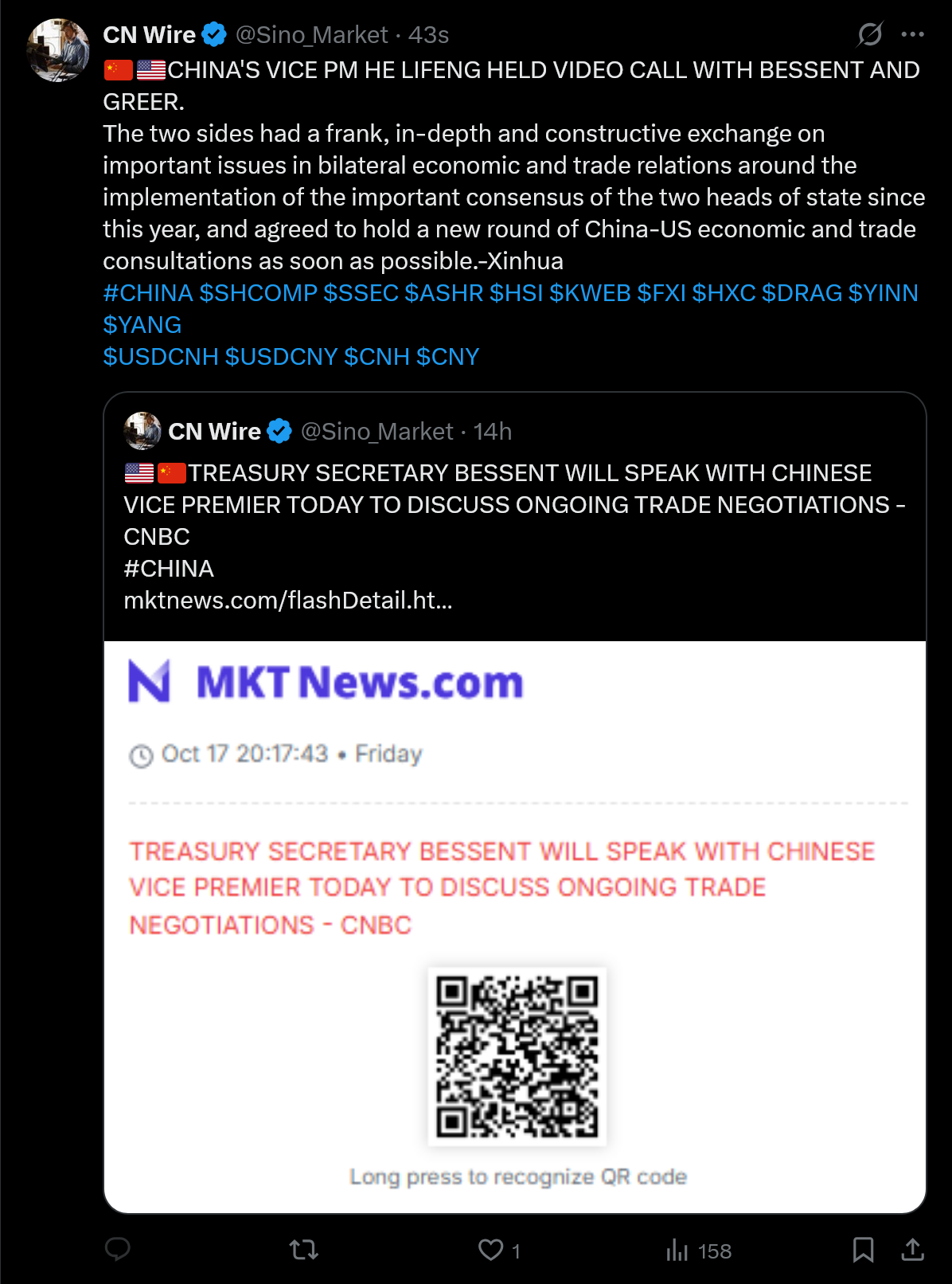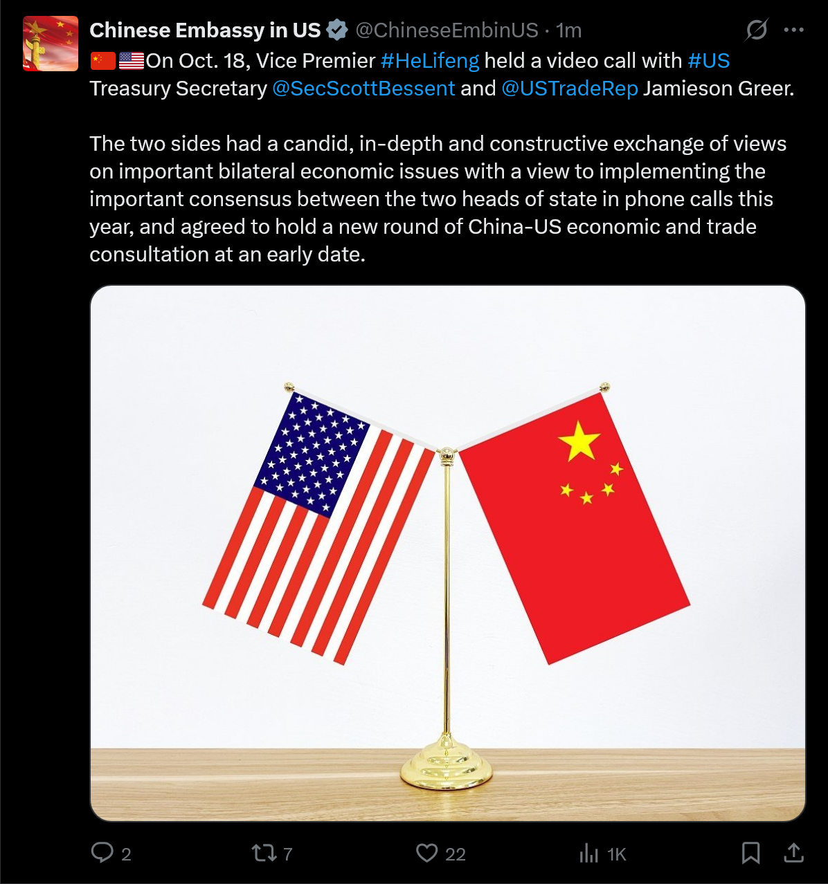 Curiously enough the US Embassy in Beijing has not updated their account and their last message is