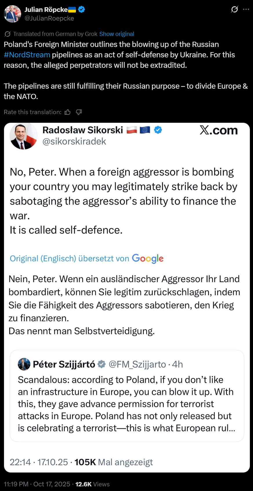 >>519178964>Orban's positions are strengthenedOrban is on his way out regardless of any meeting, even with Trump in office.>Starmer, Micron and Merz, Wonder Leyen and Kallas are made to look like clownsAll of these 'people' are irrelevant. Starmer and Macron are on their way out, too.>Trump gets an off ramp and finally dumps the Ukraine onto EU (will still sell weapons).Trump has been having an off-ramp since November 2024. The US will never retreat from Ukraine on its own. At best, they want a frozen conflict they can return to years later. Their idea is to maintain a permanent breaching point to apply pressure. Seeing how gung-ho the Europeans are, it won't be a problem.