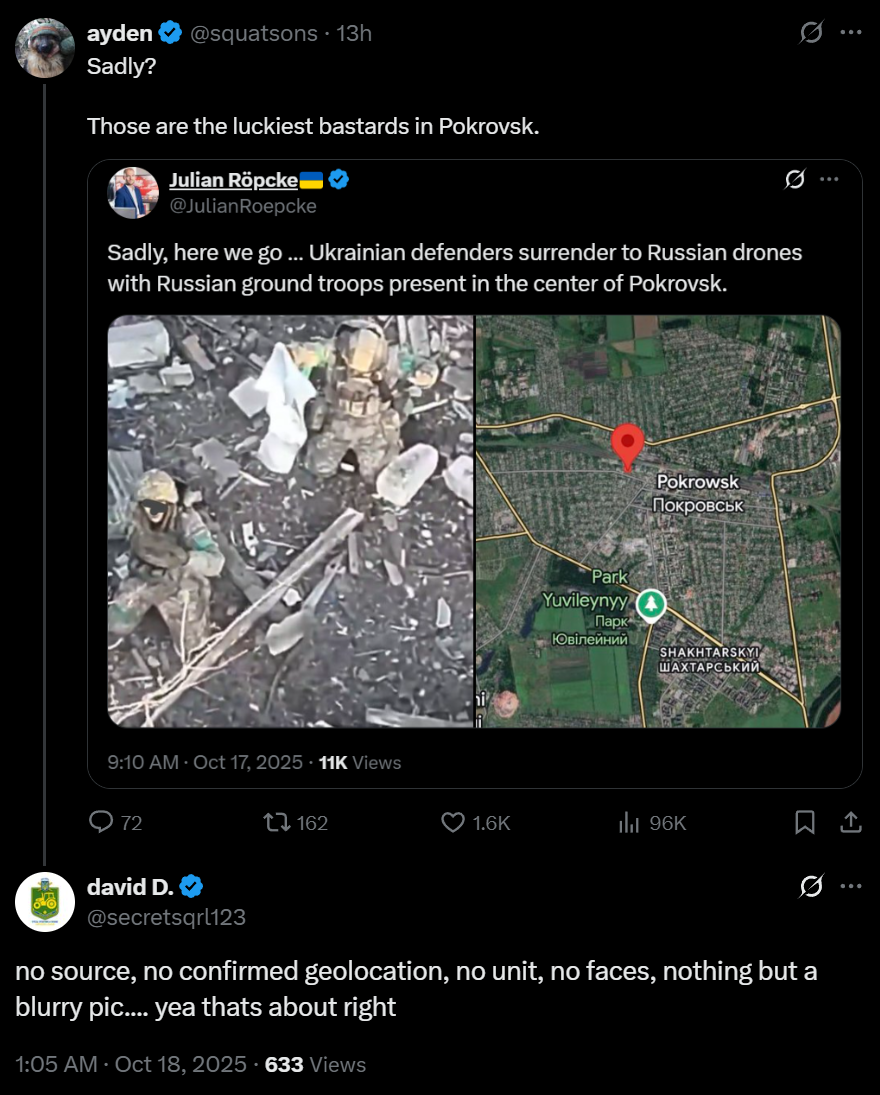 HOLY FUCKING COPE LMAOGOOGLE DEMOTED POKROVSK TO A MINOR TOWN SO IT DOESN’T SHOW UNTIL YOU ZOOM WAY IN