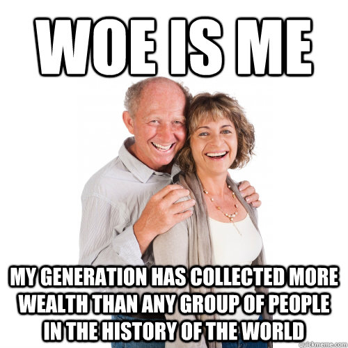 >>519180020This ironically, people don't seem to understand the problem this causes with Boomers still acting as investors/buying properties,so on and so forth. They artificially pump everything up so the younger generation can't afford anything even though these same Boomers already have like you said a house, nice car, a wife, kids, etc. but they still think they need to compete in the economy against the younger generation to gain even more. What is it with Boomers and seeing every generation after them as competition even though they are entering into their geriatric age? This is something no past generation ever did.
