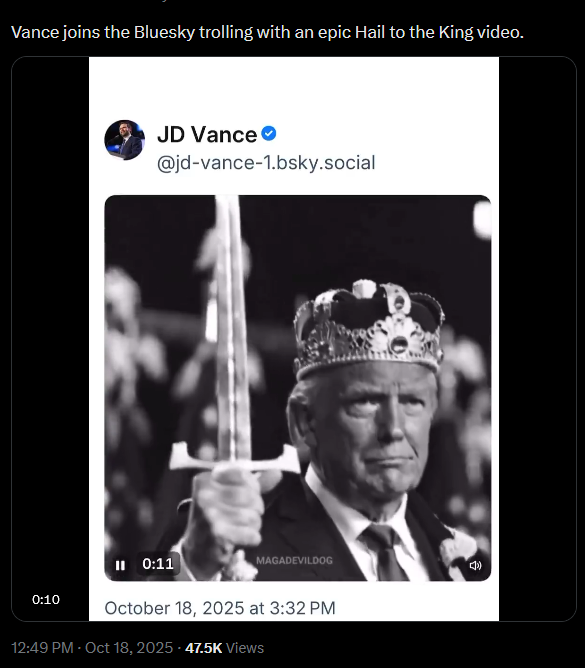 >>519233241Vance went one better.https://x.com/BlueskyLibs/status/1979636052605407505