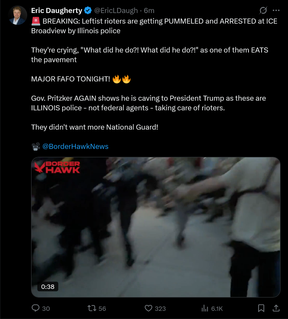 >>519237642According to my shitter feed the IL state police are currently rogue and operating independently of pritzker and chicago.