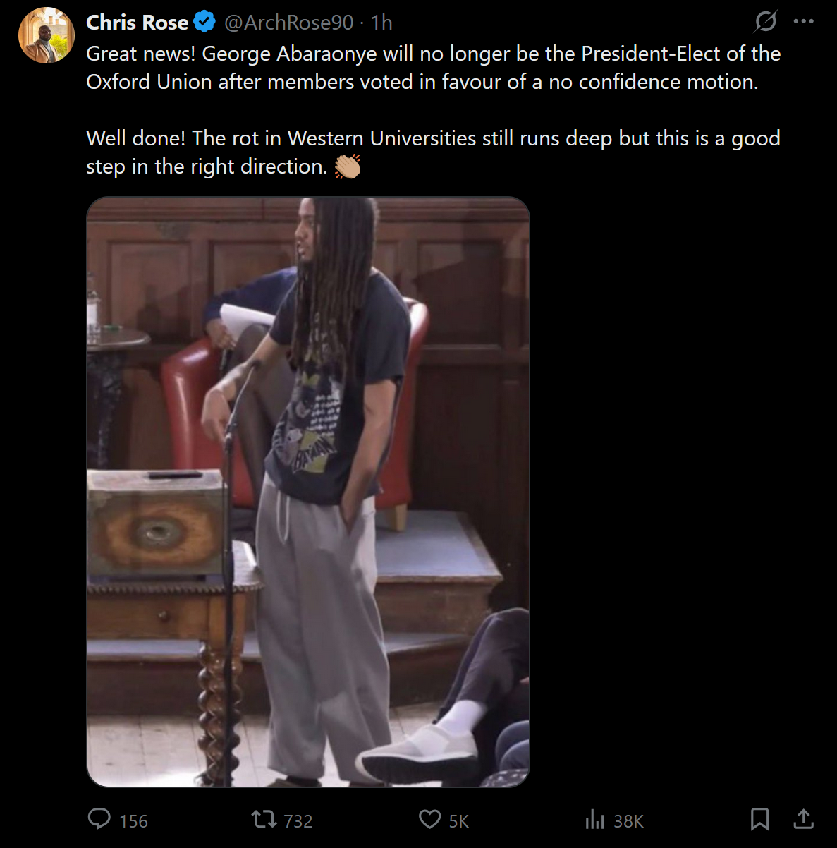 After donors and alumni forced a vote the nigger who refused to apologize or step down from becoming President of the Oxford Student Union has been, idk what the gay british term is, but his election has been overturned in a vote so he can go be a nigger somewhere else.