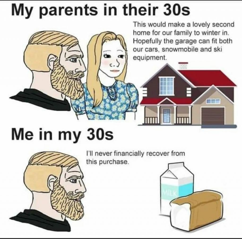 >>519247038Then they finally afford a house 40 and its what am I supposed to do now. In 1980 you can have a kid in an apartment because you know there are cheaper houses you can afford, right now it kind of weird, its like are they going build more or is that in 15 years. Its like how if you don't say the word recession you can pretend its not happening.>>519249961Even if you are a Chad the question is why aren't you earning more.