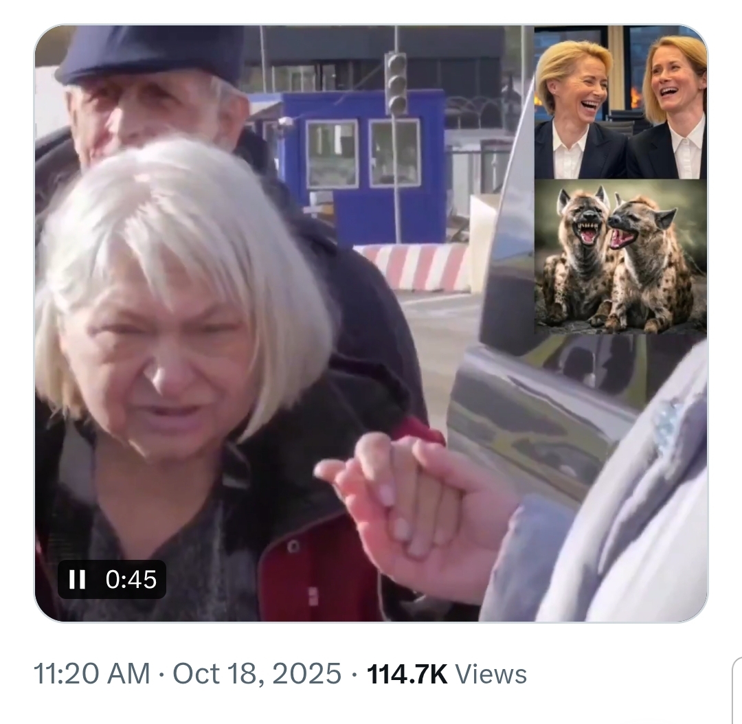 Chief of Ukrainian Defense Intelligence Kyrylo Budanov:“These [strikes on Russian oil refineries] have had a greater impact than the sanctions did. That’s a mathematical fact. Through direct action, we have inflicted far greater damage on the revenues of the Russian Federation than any economically significant measures introduced so far.That’s also an unpleasant truth, because it leads us to the next conclusion - that it’s still not enough. I mean the sanctions pressure. It is insufficient.And if things continue as they are now, it won’t have enough of an impact to change the worldview of the Russian Federation.But together with what we are doing, it will - and already does - produce results”.: We Ukrainehttps://x.com/Gerashchenko_en/status/1979587591675764857https://litter.catbox.moe/1tvr8u3lp30mjfkk.mp4