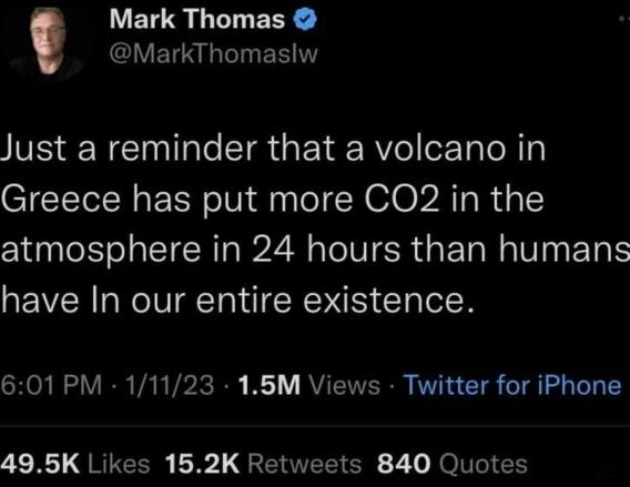 >>519355093> https://eu.usatoday.com/story/news/factcheck/2023/01/25/fact-check-humans-produce-100-times-more-co-2-than-volcanoes/11074806002/