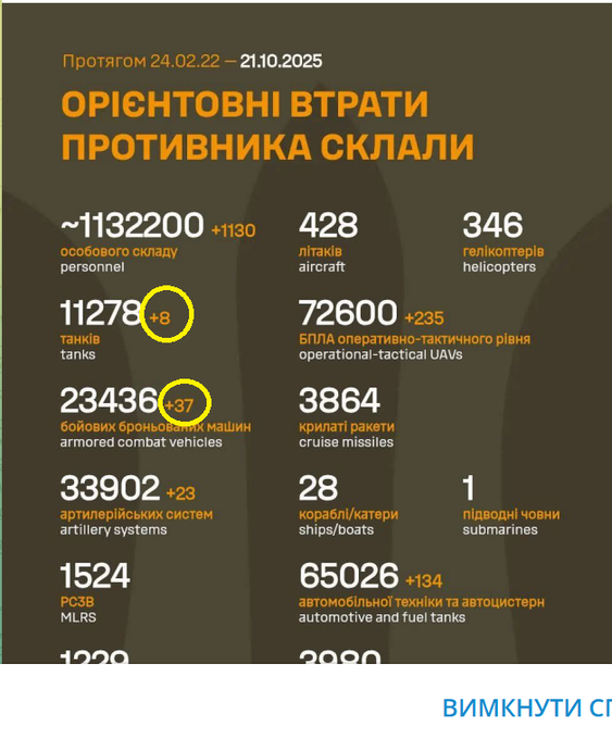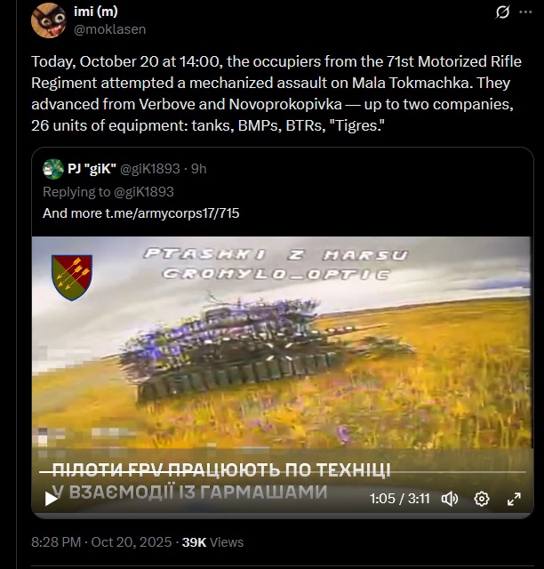 Previous: >>519402399Day 1,335 – Daily assessment: https://understandingwar.org/analysis/russia-ukraine/#research▶Latest>Refinery in Samara region and gas processing plant in Orenburg droned>Russia’s 2025 Offensive: 500,000 Lost for Just 0.4% of Ukraine - The Economist>Russia to borrow a further 4.25T>Ukrainian APKWS downed a Kh-69 cruise missile>Russians are dying to Ukrainians 14:1 - Trump>Russia to mobilise from reserve soldiers of 2 million>Trump says russia has taken 1.5million casualties.>Ukraine has liberated Alekseevka>Russia's current account in Q2 falls to just $5.4B the lowest level of the war>The Ukrainian defense forces pushed the enemy back further near Nowe Schachowe, Solotyj Kolodjas, Kutscherowo Jar, and Nowopawliwka, - DeepState>No arab countries attended russia's summit, despite nearly all being invited>Khoroshe, Novoselivka, and Sichneve have been liberated>Mali Scherbaky & Sherbaky proper has been liberated>Pokvorsk is no longer our focus, the main focus now is to capture Prymorske - gerasimov, supreme commander of the russian army>Feodosia oil terminal is still burning for 5 days now>Some residents of New Moscow were left without electricity and water due to an "accident">The rise in gasoline prices in Russia set a 14-year record>Putin has started another mobilization, Russians are receiving notices on their electronic devices, barring them from leaving the country>40 000 Belgorod residents without electricity▶Telegramhttps://rentry.org/telosint2023https://t.me/ukr_pics▶Intelhttps://t.me/DeepStateENhttps://odin.tradoc.army.mil/WEG (equipment explorer)https://ukr.warspotting.net (visually confirmed losses)▶Mapshttps://deepstatemap.live/enhttps://liveuamap.com/en▶DISPOSABLE SOLDIER (diary of a RU mobik)TOUR 1: files.catbox.moe/34fuhc.txtTOUR 2: files.catbox.moe/uj2wut.txtTOUR 3: files.catbox.moe/hmyd98.txtTOUR 4: files.catbox.moe/cdenxe.txt