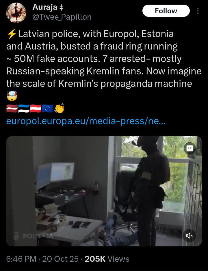 The Lakhta Center in Latvia was shut down.> The server room kept 40,000 SIM cards running, which were used to register 49 million accounts.> Posting bot crap on Twitter and YouTube will temporarily slow down.Comrade, lmaooooooooooooooooooooooooooooooooooooooooooooooooooooooooo