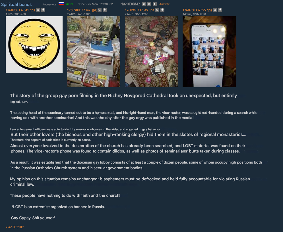 >>519429467>Anyone who knows the Russians understands that when they are on their knees, it’s only becausethey are engaging in traditional tradcon orthodox russian pass times