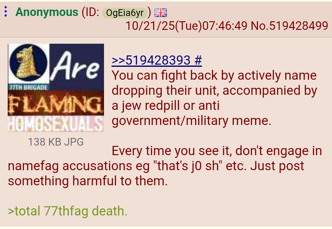 >>519435002Yes, they are in overdrive and are rattled because I exposed their proxy earlier this month and now I'm back to expose their operation to attack the chan with CP using namefag drama as a deflection.>total 77thfag death, archive everything. Previous thread has been archived now too.https://archive.ph/JAkjBhttps://archive.is/vJ2JN