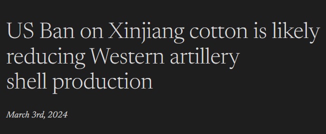 >>519446525>ban Chinese Muslim cotton because muh imaginary genocide>need more artillery shells for Ukraine>can't make nitrocellulose without celluloseLet me guess, they get the nitric acid from China too?