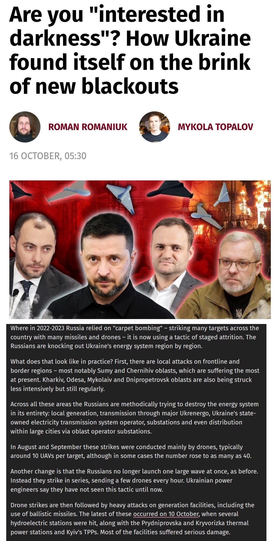 >>519447212What a beautiful title to romanticize the fact that entire Ukraine is going to halt, there is no water supply nor sewerage services and internet and other communication is going to become extremely hard while heating costs are going to skyrocket.