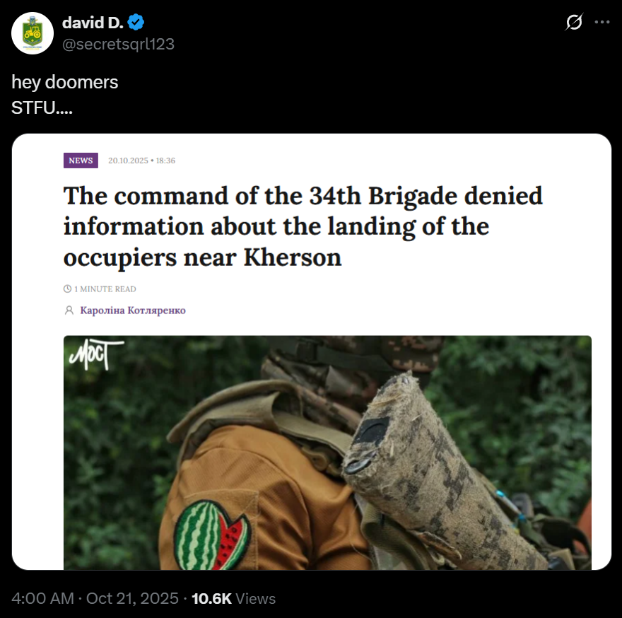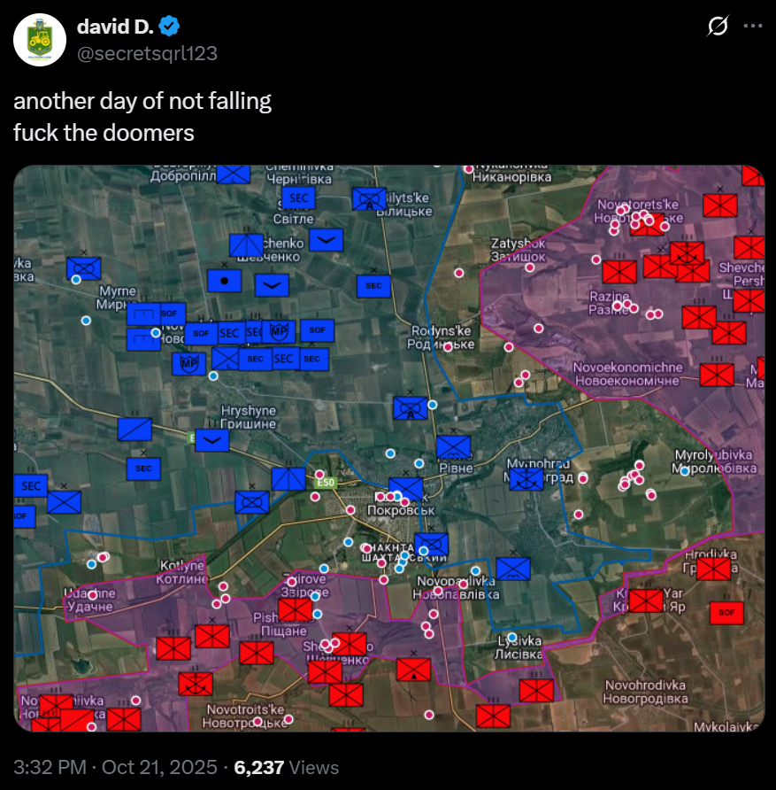 >another day of not falling>fuck the doomersPorkrovsk resists LOLOLOLOL!