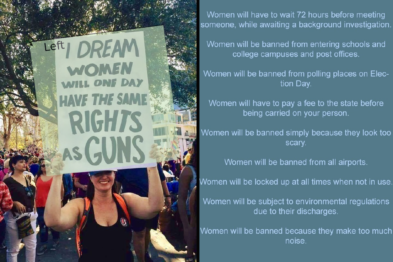 >>519509443> Can't get within 100 yards of a school> Can't get within 100 yards of a polling station> Each one has to be registered to a man who owns them> Can't speak within city limitsHmmm... I too wish women had the same rights as guns