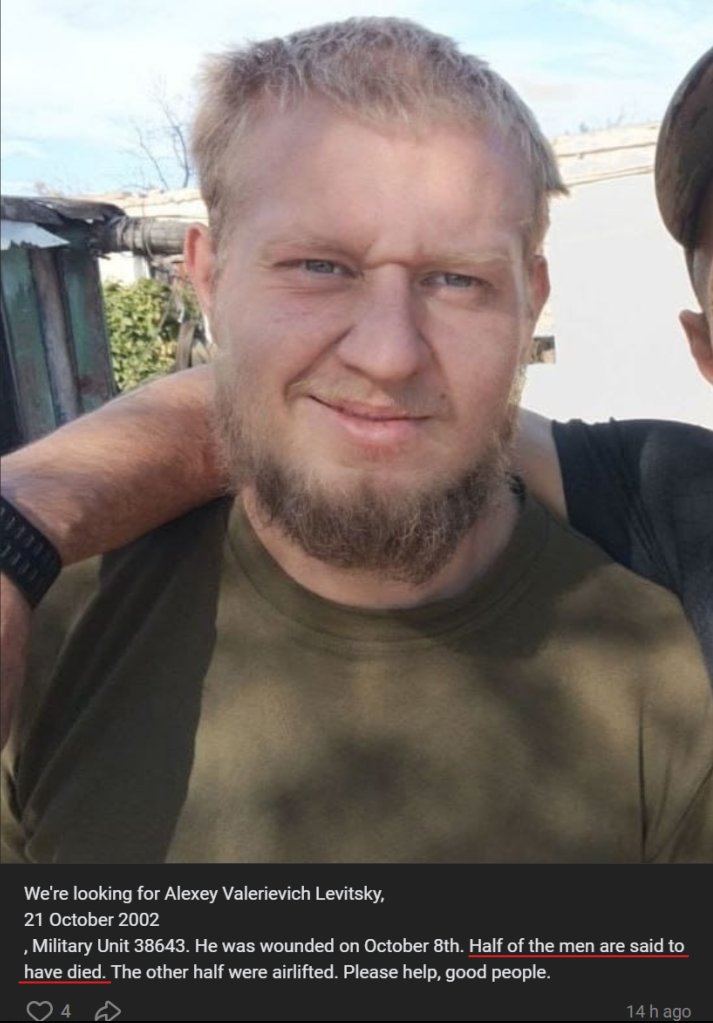 >9th Oct - ru 61st naval infantry assault of Volodymyrivka - worryingWhole unit wiped out on the outskirts of *checks notes* Volodymirivka. >Volodymyrivka, Pokrovsk Raion, Donetsk Oblast, village in Pokrovsk Raion>doesn't even have a wiki pageWas it worth it?