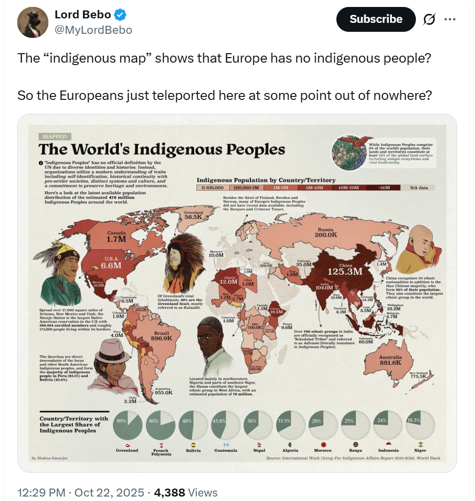 >>519520835Imagine not knowing that injuns migrated to the americas. Either everywhere has indigenous or nowhere does. I fucking hate these antiwhite faggots so much Jesus Christ