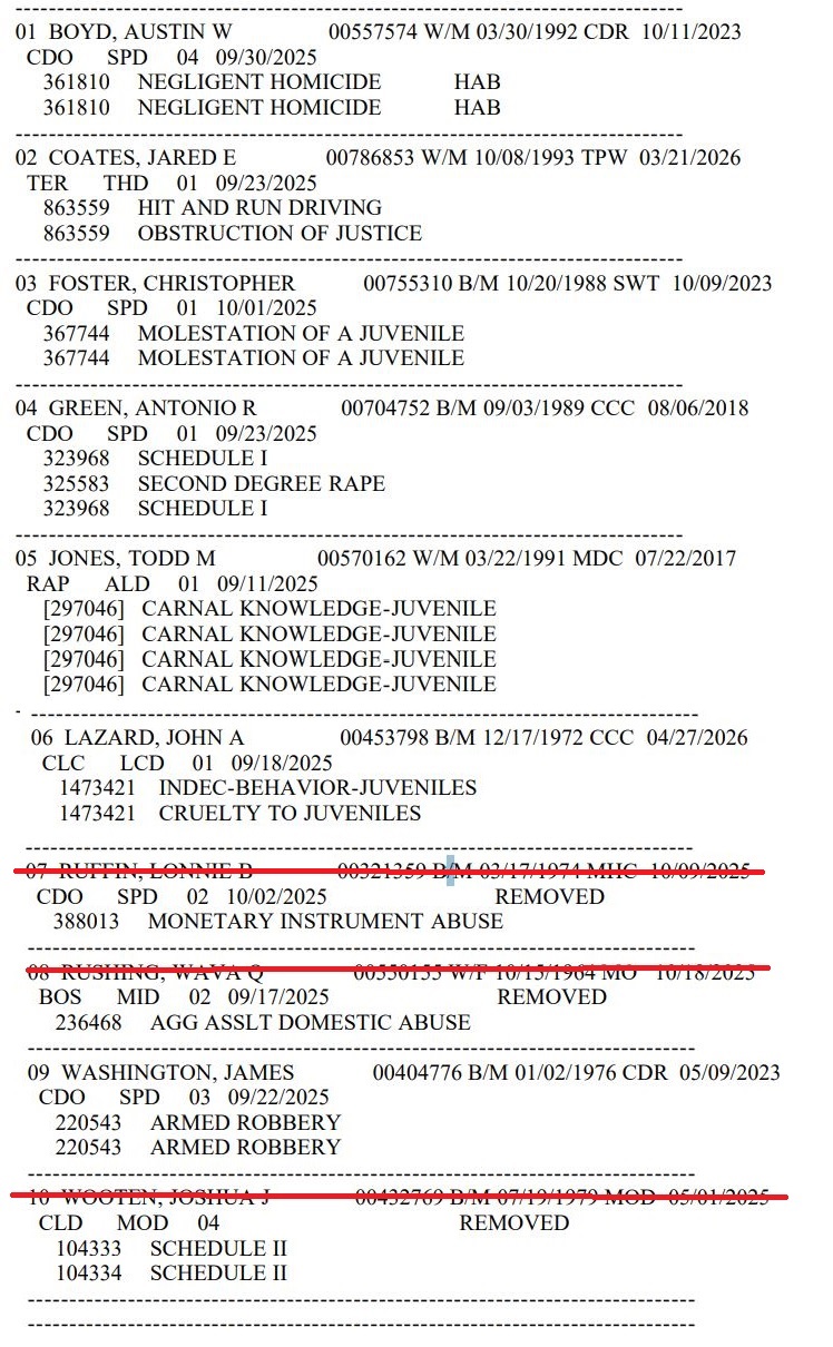 UP NEXT:05 JONES, TODD M 00570162 W/M 03/22/1991 MDC 07/22/2017 RAP ALD 01 09/11/2025 [297046] CARNAL KNOWLEDGE-JUVENILE [297046] CARNAL KNOWLEDGE-JUVENILE [297046] CARNAL KNOWLEDGE-JUVENILE [297046] CARNAL KNOWLEDGE-JUVENILEI really REALLY hope it's this guy, because it would be funny as shit, a buck breaking chief of policehttps://law.justia.com/cases/louisiana/supreme-court/2011/10k0762-opn.htmlCompletely unrealted to this case or anything else, but I found this wild story out of Louisianahttps://vocal.media/criminal/deputy-coerces-mother-to-perform-oral-s3x-on-her-1-year-old-records-acthttps://www.wafb.com/2022/10/06/former-deputy-convicted-dozens-child-porn-bestiality-counts/