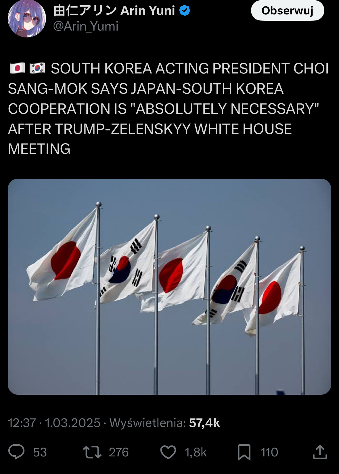 >>519675853I tend to check in with @Arin_Yumi, though they post very sparsely. This thread used to link @JPHappenings, who's an American who follows and translates Japanese news, but (A) they get way into pointless English-language drama and (B) they appear to be a gayper. Unfortunately, I don't know anyone else.